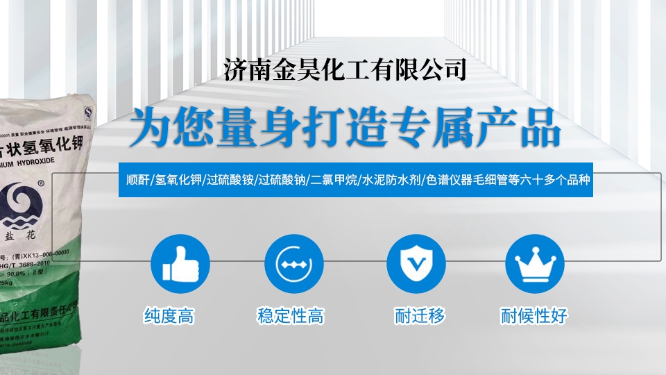 我公司是一家集、研發、貿易為一體的綜合性化工公司。主要涵蓋無機化工產品、化工產品、實驗儀器等幾大系列。主營產品為氫氧化鉀、過硫酸銨、過硫酸鈉、順酐、二氯甲烷、水泥防水劑、色譜儀器毛細管等六十多個品種。產品主要用于農藥、農肥、水處理、制藥、造紙、冶金、建筑添加劑、橡膠制造等多個領域。 歲月不居,時節如流。公司于2006年成立,如今已十幾個年頭了。一路走來我們一步一個腳印,兢兢業業,誠信經營,如今公司已發展成為年銷售額近陸仟萬元...